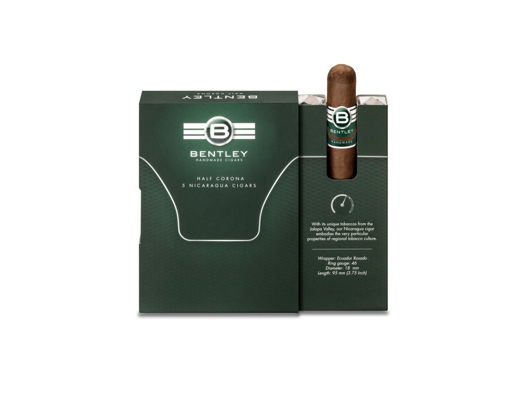 Bentley Green Half Corona, doutník, který přináší intenzivní a bohatou chuť navrženou speciálně pro znalce. Tento prémiový doutník je obalen prvotřídním krycím listem „Ecuadorian Rosado“, známým pro svůj jemně červený odstín, také označovaný jako „Colorado Claro“.