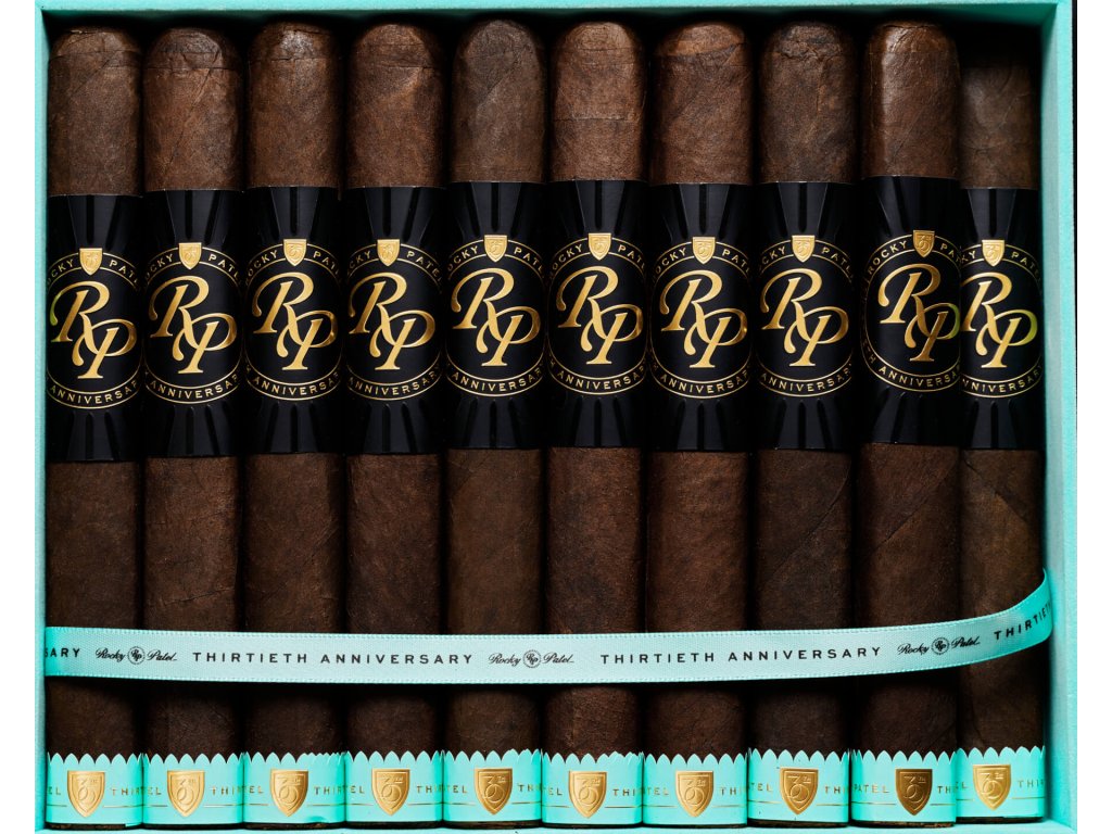 Novinka roku 2025 Rocky Patel Thirtieth Anniversary Robusto box-pressovaný doutník, který je uvedený u příležitosti 30. let v businessu Rocky Patela.