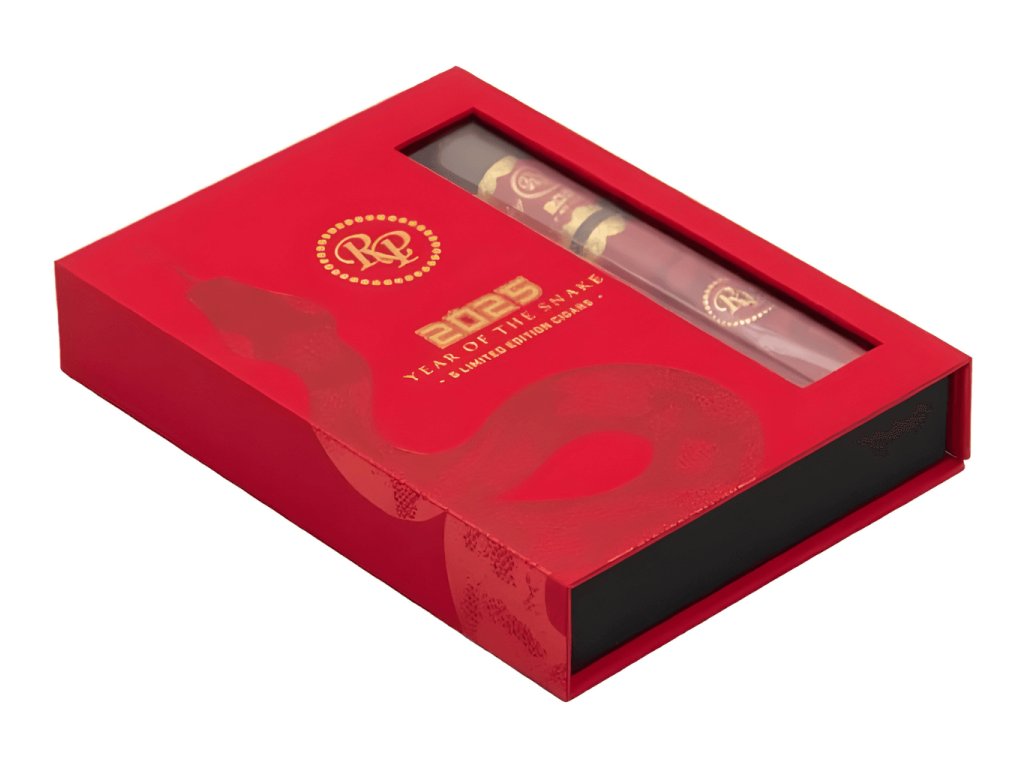 Novinka roku 2025 Rocky Patel Year of the Snake Robusto Grande je exkluzivní doutník v limitované edici dárkového balení s obsahem 5ks, který vznikl u příležitosti oslav nového lunárního roku — Roku hada.